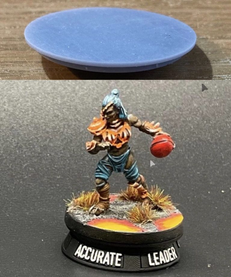 The ‘retrofit’ adaptor is designed to avoid having to rebase your existing miniatures. Simply glue your existing 32mm base to the top of the adaptor. See image for example. The design of the adaptor ensures skills are still easily seen,